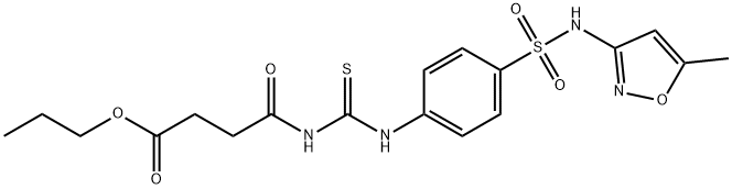 - Synonyms: propyl 4-({[(4-{[(5-methyl-3-isoxazolyl)amino]sulfonyl}phenyl)amino]carbonothioyl}amino)-4-oxobutanoate Butanoic acid, 4-[[[[4-[[(5-methyl-3-isoxazolyl)amino]sulfonyl]phenyl]amino]thioxomethyl]amino]-4-oxo-, propyl ester