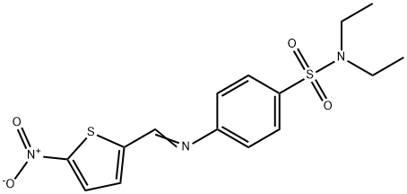 - Synonyms: N,N-diethyl-4-{[(5-nitro-2-thienyl)methylene]amino}benzenesulfonamide N,N-diethyl-4-{[(E)-(5-nitrothiophen-2-yl)methylidene]amino}benzenesulfonamide Benzenesulfonamide, N,N-diethyl-4-[[(5-nitro-2-thienyl)methylene]amino]-