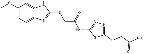 - Synonyms: N-{5-[(2-amino-2-oxoethyl)sulfanyl]-1,3,4-thiadiazol-2-yl}-2-[(5-methoxy-1H-benzimidazol-2-yl)sulfanyl]acetamide Acetamide, N-[5-[(2-amino-2-oxoethyl)thio]-1,3,4-thiadiazol-2-yl]-2-[(6-methoxy-1H-benzimidazol-2-yl)thio]-