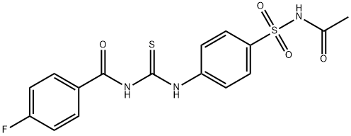 - Synonyms: N-[({4-[(acetylamino)sulfonyl]phenyl}amino)carbonothioyl]-4-fluorobenzamide N-{[4-(acetylsulfamoyl)phenyl]carbamothioyl}-4-fluorobenzamide Benzamide, N-[[[4-[(acetylamino)sulfonyl]phenyl]amino]thioxomethyl]-4-fluoro-