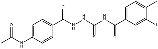 - Synonyms: N-({2-[4-(acetylamino)benzoyl]hydrazino}carbonothioyl)-3-iodo-4-methylbenzamide N-[(2-{[4-(acetylamino)phenyl]carbonyl}hydrazinyl)carbonothioyl]-3-iodo-4-methylbenzamide Benzoic acid, 4-(acetylamino)-, 2-[[(3-iodo-4-methylbenzoyl)amino]thioxomethyl]hydrazide