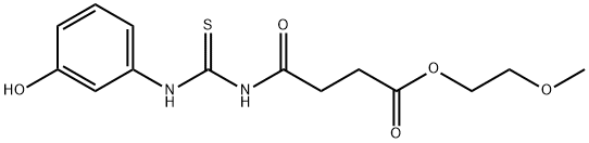 - Synonyms: 2-methoxyethyl 4-[(3-hydroxyphenyl)carbamothioylamino]-4-oxobutanoate 2-methoxyethyl 4-({[(3-hydroxyphenyl)amino]carbonothioyl}amino)-4-oxobutanoate Butanoic acid, 4-[[[(3-hydroxyphenyl)amino]thioxomethyl]amino]-4-oxo-, 2-methoxyethyl ester