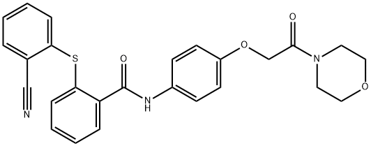 - Synonyms: 2-[(2-cyanophenyl)sulfanyl]-N-{4-[2-(4-morpholinyl)-2-oxoethoxy]phenyl}benzamide Benzamide, 2-[(2-cyanophenyl)thio]-N-[4-[2-(4-morpholinyl)-2-oxoethoxy]phenyl]-