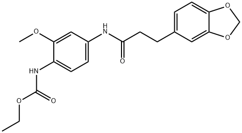 - Synonyms: ethyl 4-{[3-(1,3-benzodioxol-5-yl)propanoyl]amino}-2-methoxyphenylcarbamate Carbamic acid, N-[4-[[3-(1,3-benzodioxol-5-yl)-1-oxopropyl]amino]-2-methoxyphenyl]-, ethyl ester