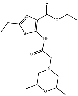- Synonyms: ethyl 2-(2-(2,6-dimethylmorpholino)acetamido)-5-ethylthiophene-3-carboxylate 3-Thiophenecarboxylic acid, 2-[[2-(2,6-dimethyl-4-morpholinyl)acetyl]amino]-5-ethyl-, ethyl ester