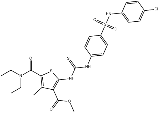 - Synonyms: methyl 2-(3-(4-(N-(4-chlorophenyl)sulfamoyl)phenyl)thioureido)-5-(diethylcarbamoyl)-4-methylthiophene-3-carboxylate 3-Thiophenecarboxylic acid, 2-[[[[4-[[(4-chlorophenyl)amino]sulfonyl]phenyl]amino]thioxomethyl]amino]-5-[(diethylamino)carbonyl]-4-methyl-, methyl ester