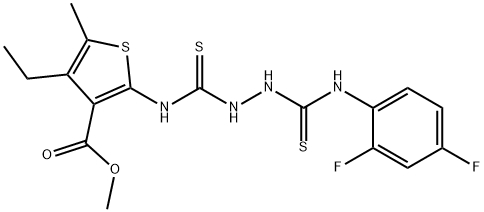 - Synonyms: methyl 2-(2-((2,4-difluorophenyl)carbamothioyl)hydrazinecarbothioamido)-4-ethyl-5-methylthiophene-3-carboxylate 3-Thiophenecarboxylic acid, 2-[[[2-[[(2,4-difluorophenyl)amino]thioxomethyl]hydrazinyl]thioxomethyl]amino]-4-ethyl-5-methyl-, methyl ester