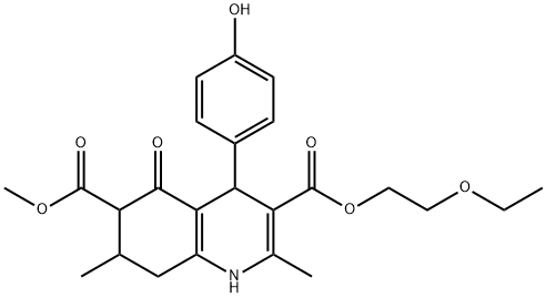 - Synonyms: 3-(2-ethoxyethyl) 6-methyl 4-(4-hydroxyphenyl)-2,7-dimethyl-5-oxo-1,4,5,6,7,8-hexahydroquinoline-3,6-dicarboxylate 3,6-Quinolinedicarboxylic acid, 1,4,5,6,7,8-hexahydro-4-(4-hydroxyphenyl)-2,7-dimethyl-5-oxo-, 3-(2-ethoxyethyl) 6-methyl ester