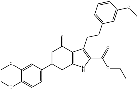 - Synonyms: ethyl 6-(3,4-dimethoxyphenyl)-3-(3-methoxyphenethyl)-4-oxo-4,5,6,7-tetrahydro-1H-indole-2-carboxylate 1H-Indole-2-carboxylic acid, 6-(3,4-dimethoxyphenyl)-4,5,6,7-tetrahydro-3-[2-(3-methoxyphenyl)ethyl]-4-oxo-, ethyl ester