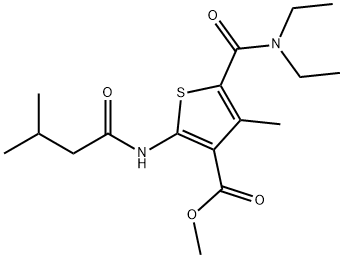 - Synonyms: methyl 5-(diethylcarbamoyl)-4-methyl-2-(3-methylbutanoylamino)thiophene-3-carboxylate 3-Thiophenecarboxylic acid, 5-[(diethylamino)carbonyl]-4-methyl-2-[(3-methyl-1-oxobutyl)amino]-, methyl ester