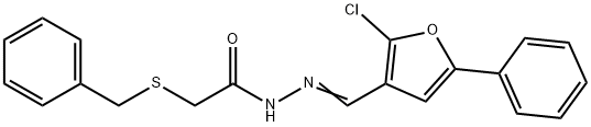 - Synonyms: 2-benzylsulfanyl-N-[(E)-(2-chloro-5-phenylfuran-3-yl)methylideneamino]acetamide Acetic acid, 2-[(phenylmethyl)thio]-, 2-[(2-chloro-5-phenyl-3-furanyl)methylene]hydrazide