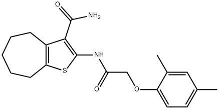 - Synonyms: 2-[[2-(2,4-dimethylphenoxy)acetyl]amino]-5,6,7,8-tetrahydro-4H-cyclohepta[b]thiophene-3-carboxamide 4H-Cyclohepta[b]thiophene-3-carboxamide, 2-[[2-(2,4-dimethylphenoxy)acetyl]amino]-5,6,7,8-tetrahydro-