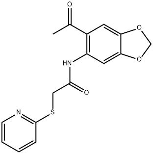 - Synonyms: N-(6-acetyl-1,3-benzodioxol-5-yl)-2-pyridin-2-ylsulfanylacetamide Acetamide, N-(6-acetyl-1,3-benzodioxol-5-yl)-2-(2-pyridinylthio)-