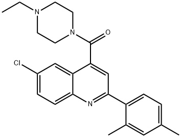 - Synonyms: [6-chloro-2-(2,4-dimethylphenyl)quinolin-4-yl]-(4-ethylpiperazin-1-yl)methanone Methanone, [6-chloro-2-(2,4-dimethylphenyl)-4-quinolinyl](4-ethyl-1-piperazinyl)-