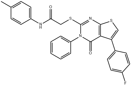 - Synonyms: 2-[5-(4-fluorophenyl)-4-oxo-3-phenylthieno[2,3-d]pyrimidin-2-yl]sulfanyl-N-(4-methylphenyl)acetamide Acetamide, 2-[[5-(4-fluorophenyl)-3,4-dihydro-4-oxo-3-phenylthieno[2,3-d]pyrimidin-2-yl]thio]-N-(4-methylphenyl)-