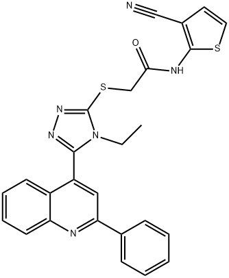 - Synonyms: N-(3-cyanothiophen-2-yl)-2-[[4-ethyl-5-(2-phenylquinolin-4-yl)-1,2,4-triazol-3-yl]sulfanyl]acetamide Acetamide, N-(3-cyano-2-thienyl)-2-[[4-ethyl-5-(2-phenyl-4-quinolinyl)-4H-1,2,4-triazol-3-yl]thio]-
