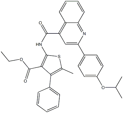 - Synonyms: ethyl 5-methyl-4-phenyl-2-[[2-(4-propan-2-yloxyphenyl)quinoline-4-carbonyl]amino]thiophene-3-carboxylate