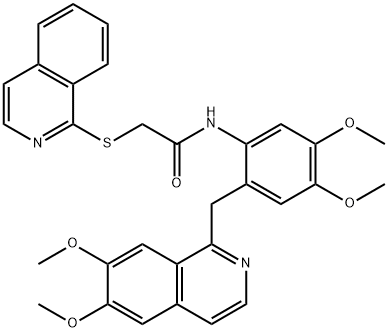 - Synonyms: N-[2-[(6,7-dimethoxyisoquinolin-1-yl)methyl]-4,5-dimethoxyphenyl]-2-isoquinolin-1-ylsulfanylacetamide Acetamide, N-[2-[(6,7-dimethoxy-1-isoquinolinyl)methyl]-4,5-dimethoxyphenyl]-2-(1-isoquinolinylthio)-