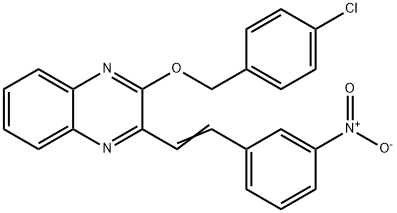 - Synonyms: 2-[(4-chlorophenyl)methoxy]-3-[(E)-2-(3-nitrophenyl)ethenyl]quinoxaline Quinoxaline, 2-[(4-chlorophenyl)methoxy]-3-[2-(3-nitrophenyl)ethenyl]-