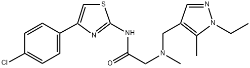 - Synonyms: N-[4-(4-chlorophenyl)-1,3-thiazol-2-yl]-2-[(1-ethyl-5-methylpyrazol-4-yl)methyl-methylamino]acetamide Acetamide, N-[4-(4-chlorophenyl)-2-thiazolyl]-2-[[(1-ethyl-5-methyl-1H-pyrazol-4-yl)methyl]methylamino]-
