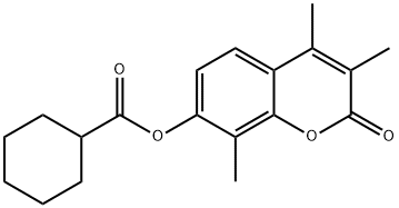- Synonyms: (3,4,8-trimethyl-2-oxochromen-7-yl) cyclohexanecarboxylate Cyclohexanecarboxylic acid, 3,4,8-trimethyl-2-oxo-2H-1-benzopyran-7-yl ester