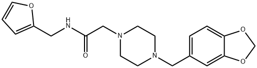 - Synonyms: 2-[4-(1,3-benzodioxol-5-ylmethyl)piperazin-1-yl]-N-(furan-2-ylmethyl)acetamide 1-Piperazineacetamide, 4-(1,3-benzodioxol-5-ylmethyl)-N-(2-furanylmethyl)-