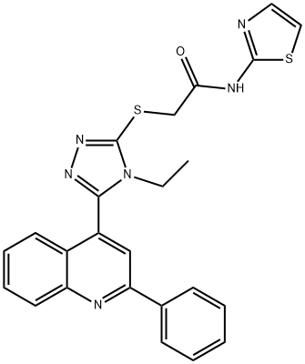 - Synonyms: 2-[[4-ethyl-5-(2-phenylquinolin-4-yl)-1,2,4-triazol-3-yl]sulfanyl]-N-(1,3-thiazol-2-yl)acetamide Acetamide, 2-[[4-ethyl-5-(2-phenyl-4-quinolinyl)-4H-1,2,4-triazol-3-yl]thio]-N-2-thiazolyl-