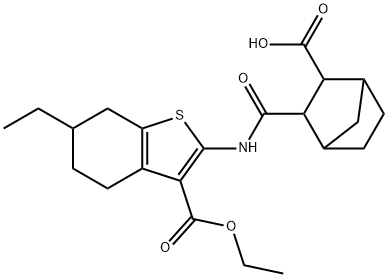 - Synonyms: 2-[(3-ethoxycarbonyl-6-ethyl-4,5,6,7-tetrahydro-1-benzothiophen-2-yl)carbamoyl]bicyclo[2.2.1]heptane-3-carboxylic acid Benzo[b]thiophene-3-carboxylic acid, 2-[[(3-carboxybicyclo[2.2.1]hept-2-yl)carbonyl]amino]-6-ethyl-4,5,6,7-tetrahydro-, 3-ethyl ester