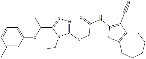 - Synonyms: N-(3-cyano-5,6,7,8-tetrahydro-4H-cyclohepta[b]thiophen-2-yl)-2-[[4-ethyl-5-[1-(3-methylphenoxy)ethyl]-1,2,4-triazol-3-yl]sulfanyl]acetamide