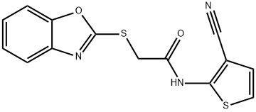 - Synonyms: 2-(1,3-benzoxazol-2-ylsulfanyl)-N-(3-cyanothiophen-2-yl)acetamide Acetamide, 2-(2-benzoxazolylthio)-N-(3-cyano-2-thienyl)-
