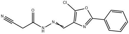 - Synonyms: N-[(E)-(5-chloro-2-phenyl-1,3-oxazol-4-yl)methylideneamino]-2-cyanoacetamide Acetic acid, 2-cyano-, 2-[(5-chloro-2-phenyl-4-oxazolyl)methylene]hydrazide