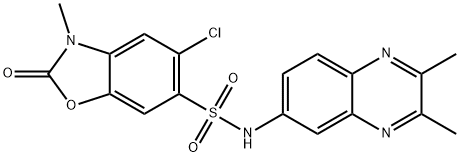 - Synonyms: 5-chloro-N-(2,3-dimethylquinoxalin-6-yl)-3-methyl-2-oxo-1,3-benzoxazole-6-sulfonamide 6-Benzoxazolesulfonamide, 5-chloro-N-(2,3-dimethyl-6-quinoxalinyl)-2,3-dihydro-3-methyl-2-oxo-