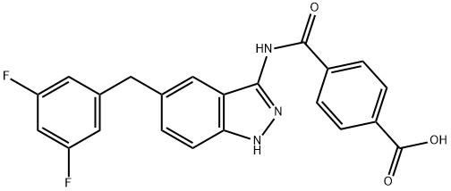 - Synonyms: Benzoic acid, 4-[[[5-[(3,5-difluorophenyl)methyl]-1H-indazol-3-yl]amino]carbonyl]- 4-{[5-(3,5-difluorobenzyl)-1H-indazol-3-yl]carbamoyl}benzoicacid