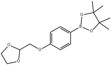 - Synonyms: 2-[4-([1,3]DIOXOLAN-2-YLMETHOXY)-PHENYL]-4,4,5,5-TETRAMETHYL-[1,3,2]DIOXABOROLANE 1,3,2-Dioxaborolane,2-[4-(1,3-dioxolan-2-ylmethoxy)phenyl]-4,4,5,5-tetramethyl- 4-([1,3]Dioxolan-2-ylmethoxy)-phenylboronic acid pinacol ester 4-([1,3]Dioxolan-2-ylmethoxy)-phenylboronic acid pin