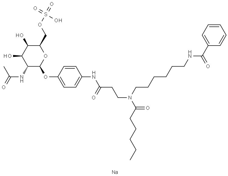 - Synonyms: GALNS-S Benzamide, N-[6-[[3-[[4-[[2-(acetylamino)-2-deoxy-6-O-sulfo-β-D-galactopyranosyl]oxy]phenyl]amino]-3-oxopropyl](1-oxohexyl)amino]hexyl]-, sodium salt (1:1)