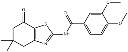 - Synonyms: N-(5,5-dimethyl-7-oxo-4,5,6,7-tetrahydro-1,3-benzothiazol-2-yl)-3,4-dimethoxybenzamide N-(5,5-dimethyl-7-oxo-4,5,6,7-tetrahydrobenzo[d]thiazol-2-yl)-3,4-dimethoxybenzamide Benzamide, 3,4-dimethoxy-N-(4,5,6,7-tetrahydro-5,5-dimethyl-7-oxo-2-benzothiazolyl)-