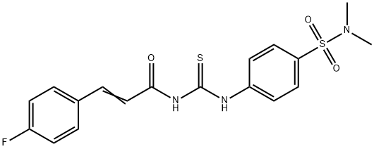 - Synonyms: N-[({4-[(dimethylamino)sulfonyl]phenyl}amino)carbonothioyl]-3-(4-fluorophenyl)acrylamide (2E)-N-{[4-(dimethylsulfamoyl)phenyl]carbamothioyl}-3-(4-fluorophenyl)prop-2-enamide 2-Propenamide, N-[[[4-[(dimethylamino)sulfonyl]phenyl]amino]thioxomethyl]-3-(4-fluorophenyl)-