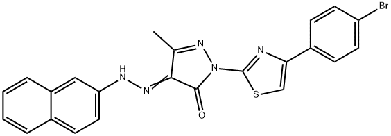 - Synonyms: 2-[4-(4-bromophenyl)-1,3-thiazol-2-yl]-5-methyl-4-(2-naphthylhydrazono)-2,4-dihydro-3H-pyrazol-3-one 1H-Pyrazole-4,5-dione, 1-[4-(4-bromophenyl)-2-thiazolyl]-3-methyl-, 4-[2-(2-naphthalenyl)hydrazone]