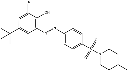 - Synonyms: 2-bromo-4-tert-butyl-6-({4-[(4-methyl-1-piperidinyl)sulfonyl]phenyl}diazenyl)phenol Phenol, 2-bromo-4-(1,1-dimethylethyl)-6-[2-[4-[(4-methyl-1-piperidinyl)sulfonyl]phenyl]diazenyl]-