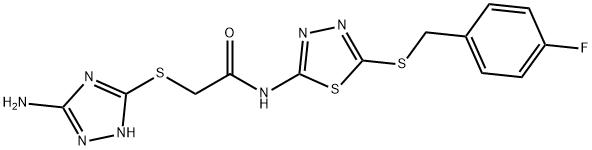 - Synonyms: 2-[(5-amino-1H-1,2,4-triazol-3-yl)sulfanyl]-N-[5-[(4-fluorophenyl)methylsulfanyl]-1,3,4-thiadiazol-2-yl]acetamide Acetamide, 2-[(3-amino-1H-1,2,4-triazol-5-yl)thio]-N-[5-[[(4-fluorophenyl)methyl]thio]-1,3,4-thiadiazol-2-yl]-