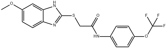 - Synonyms: 2-[(6-methoxy-1H-benzimidazol-2-yl)sulfanyl]-N-[4-(trifluoromethoxy)phenyl]acetamide Acetamide, 2-[(6-methoxy-1H-benzimidazol-2-yl)thio]-N-[4-(trifluoromethoxy)phenyl]-