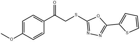 - Synonyms: 1-(4-methoxyphenyl)-2-{[5-(2-thienyl)-1,3,4-oxadiazol-2-yl]sulfanyl}ethanone Ethanone, 1-(4-methoxyphenyl)-2-[[5-(2-thienyl)-1,3,4-oxadiazol-2-yl]thio]-