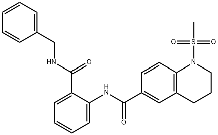 - Synonyms: N-{2-[(benzylamino)carbonyl]phenyl}-1-(methylsulfonyl)-1,2,3,4-tetrahydro-6-quinolinecarboxamide 6-Quinolinecarboxamide, 1,2,3,4-tetrahydro-1-(methylsulfonyl)-N-[2-[[(phenylmethyl)amino]carbonyl]phenyl]-