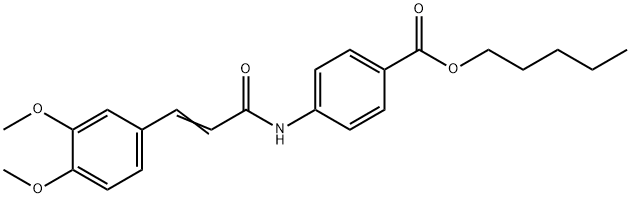 - Synonyms: (E)-pentyl 4-(3-(3,4-dimethoxyphenyl)acrylamido)benzoate Benzoic acid, 4-[[3-(3,4-dimethoxyphenyl)-1-oxo-2-propen-1-yl]amino]-, pentyl ester
