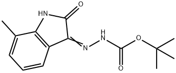 - Synonyms: tert-butyl 2-(7-methyl-2-oxoindolin-3-ylidene)hydrazinecarboxylate Hydrazinecarboxylic acid, 2-(1,2-dihydro-7-methyl-2-oxo-3H-indol-3-ylidene)-, 1,1-dimethylethyl ester