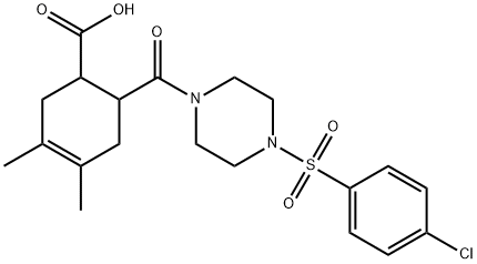 - Synonyms: 6-(4-((4-chlorophenyl)sulfonyl)piperazine-1-carbonyl)-3,4-dimethylcyclohex-3-enecarboxylic acid 3-Cyclohexene-1-carboxylic acid, 6-[[4-[(4-chlorophenyl)sulfonyl]-1-piperazinyl]carbonyl]-3,4-dimethyl-