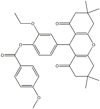 - Product Name:2-ethoxy-4-(3,3,6,6-tetramethyl-1,8-dioxo-2,3,4,5,6,7,8,9-octahydro-1H-xanthen-9-yl)phenyl 4-methoxybenzoate