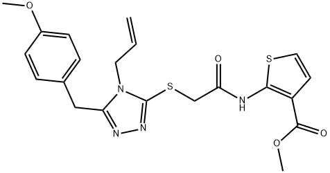 - Synonyms: methyl 2-(2-((4-allyl-5-(4-methoxybenzyl)-4H-1,2,4-triazol-3-yl)thio)acetamido)thiophene-3-carboxylate 3-Thiophenecarboxylic acid, 2-[[2-[[5-[(4-methoxyphenyl)methyl]-4-(2-propen-1-yl)-4H-1,2,4-triazol-3-yl]thio]acetyl]amino]-, methyl ester