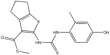 - Synonyms: methyl 2-(3-(4-hydroxy-2-methylphenyl)thioureido)-5,6-dihydro-4H-cyclopenta[b]thiophene-3-carboxylate