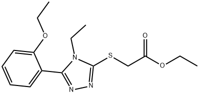 - Synonyms: ethyl 2-((5-(2-ethoxyphenyl)-4-ethyl-4H-1,2,4-triazol-3-yl)thio)acetate Acetic acid, 2-[[5-(2-ethoxyphenyl)-4-ethyl-4H-1,2,4-triazol-3-yl]thio]-, ethyl ester